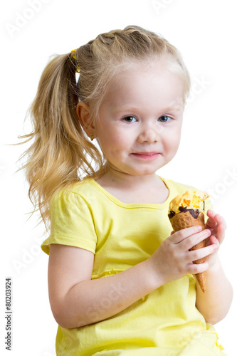 Happy Kid Girl Eating Ice Cream Isolated Buy This Stock